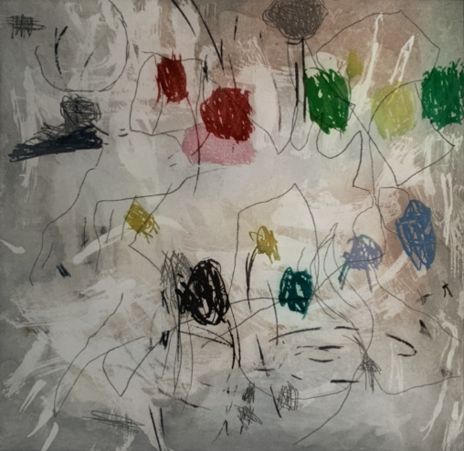 Silke’s interest in printmaking began during studying for a degree in jewellery and silversmithing at the Sir John Cass Schools of Art in London and she now works in both disciplines. She develops her prints combining different etching techniques and often uses multiple plates. Modernism is a continuous inspiration and influence, the subject matter abstraction, interior spaces and still life. Despite the visible energy of mark making there is a sense of stillness in her work.